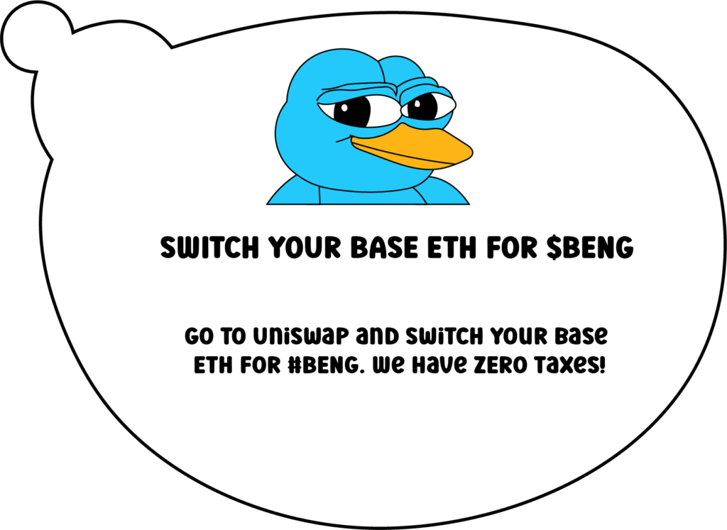 $BENG WAS MADE FOR A FAN AND HAS NO VALUE. DON’T RISK MONEY YOU ARE AFRAID OF LOSING. THE PRICE MAY GO UP OR IT MAY GO DOWN. WE ARE NOT RESPONSIBLE FOR THE PRICE OF THE TOKEN.
